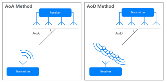 最新藍(lán)牙標(biāo)準(zhǔn)(5.1)允許系統(tǒng)使用天線(xiàn)陣列來(lái)確定通信方向(圖3)。使用天線(xiàn)陣列的單個(gè)設(shè)備可以與任何其他藍(lán)牙設(shè)備一起確定彼此的相對(duì)方向。這是通過(guò)測(cè)量到達(dá)角(AoA)或離開(kāi)角(AoD),這取決于通信的方向和哪個(gè)設(shè)備有天線(xiàn)陣列。